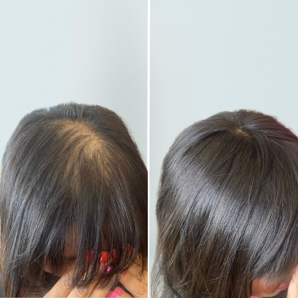 Les résultats peuvent varier d'une personne à l'autre en fonction de différents facteurs comme la génétique et la régularité d'utilisation. Cependant, la plupart de nos clients constatent une amélioration visible de la pousse des cheveux et de leur densité après 2 à 3 semaines d'utilisation régulière.