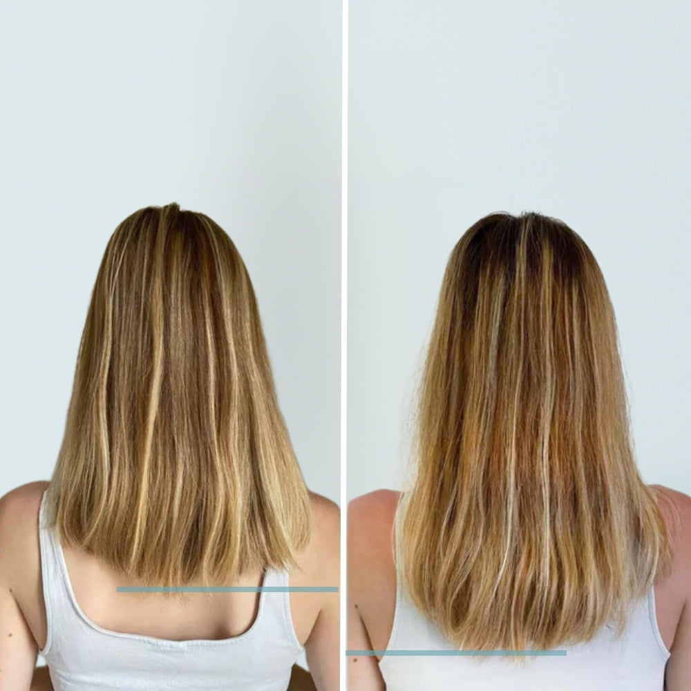 Les résultats peuvent varier d'une personne à l'autre en fonction de différents facteurs comme la génétique et la régularité d'utilisation. Cependant, la plupart de nos clients constatent une amélioration visible de la pousse des cheveux et de leur densité aprÚs 2 à 3 semaines d'utilisation réguliÚre.